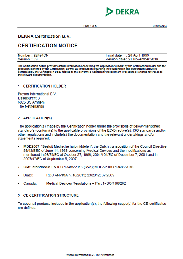 CE marking of conformity was obtained in 1996 and renewed ever since.